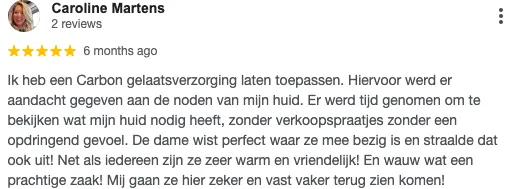 "ik ben echt verbaasd over de resultaten. Ik heb een prachtige lifting gekregen en de structuur van de huid is veel gezonder geworden. Echt een aanrader!"